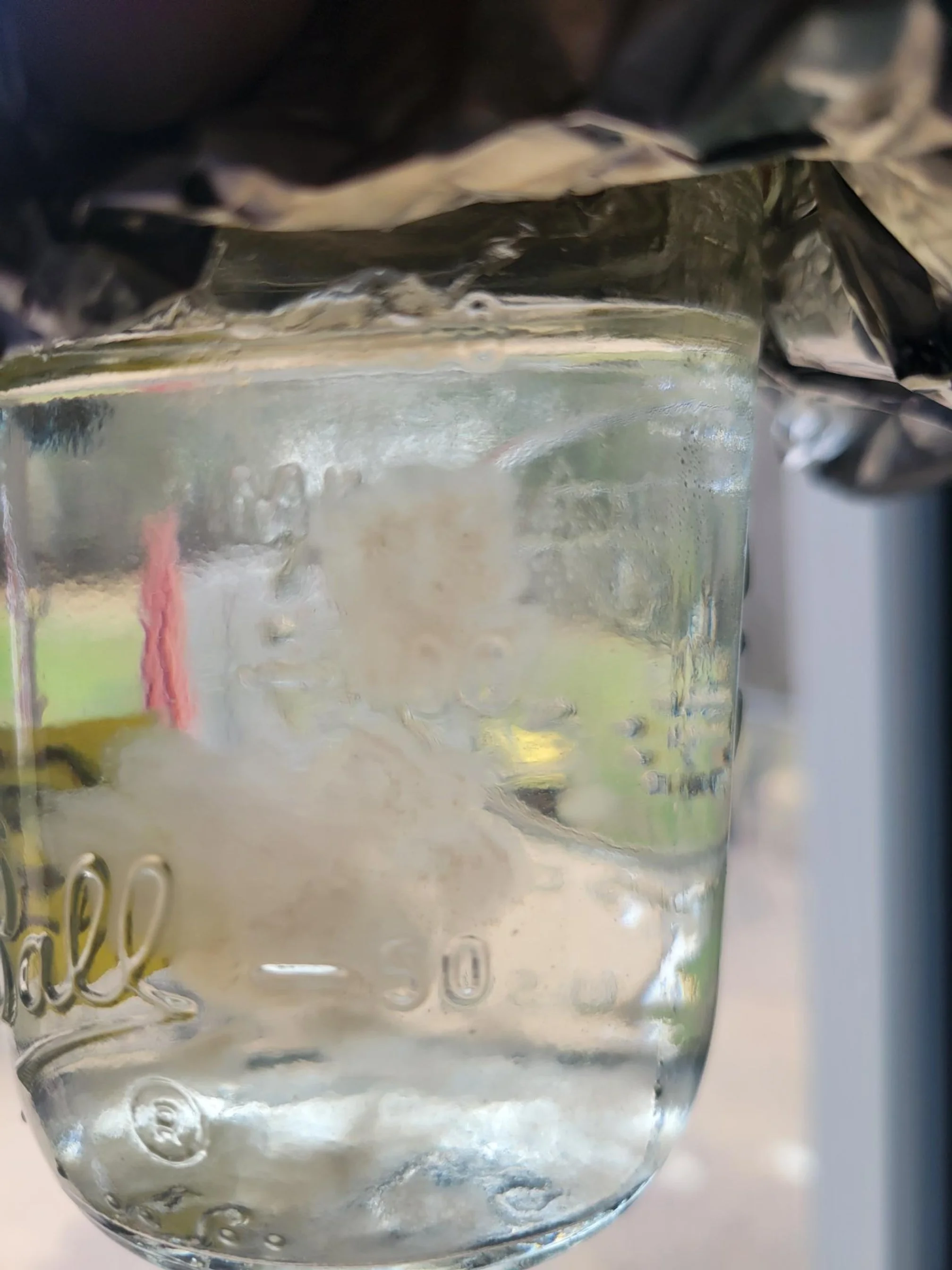 It starts with a nutritious liquid culture in which spores are grown into delicate mycelium. Pictured here is a beautiful mycelium cloud floating happily in liquid culture.